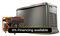Our automatic standby generators can be run on either natural gas or propane. Portable generators run on standard gasoline available at all local gas stations.